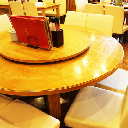 中華料理の醍醐味である「大皿料理」を皆様でシェアしやすい、ターンテーブル付きの円卓を多数ご用意しております。温かみのある木目調のテーブルが、アットホームで和やかな雰囲気を演出。ご友人やご家族とテーブルを囲めば、自然と会話も弾みます◎